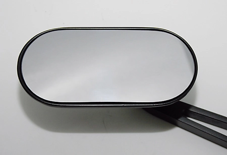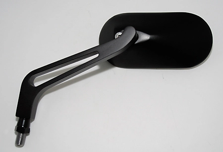 High-quality finished, black handlebar mirror with an oval head and a slightly gray-tinted mirror glass for optimum glare protection. The mirror arm is provided with a large recess.